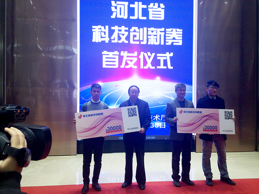 2016年12月30日,河北省科技創新券首發儀式暨創新服務提供機構授牌儀式在石家莊舉行。省科技廳黨組副書記、副廳長郭玉明出席活動并講話,并對科技創新券的使用提出了具體要求。來自省內的30家創新創業團隊代表參會,石家莊高新區科技局代表審核發放機構介紹個創新券使用說明及首批申領情況。郭玉明副廳長為10家創新服務提供機構授牌,并為10家創新券申領單位代表發券。